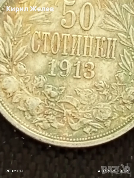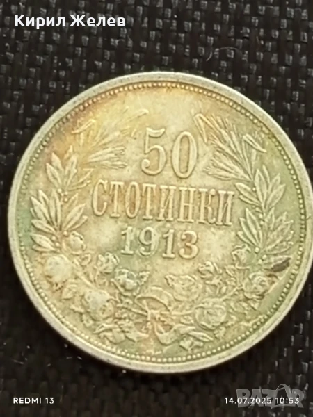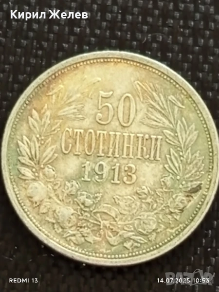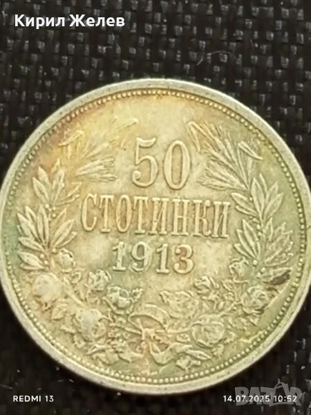 Сребърна монета 50 стотинки 1913г. Царство България Цар Фердинанд първи за КОЛЕКЦИЯ 40313