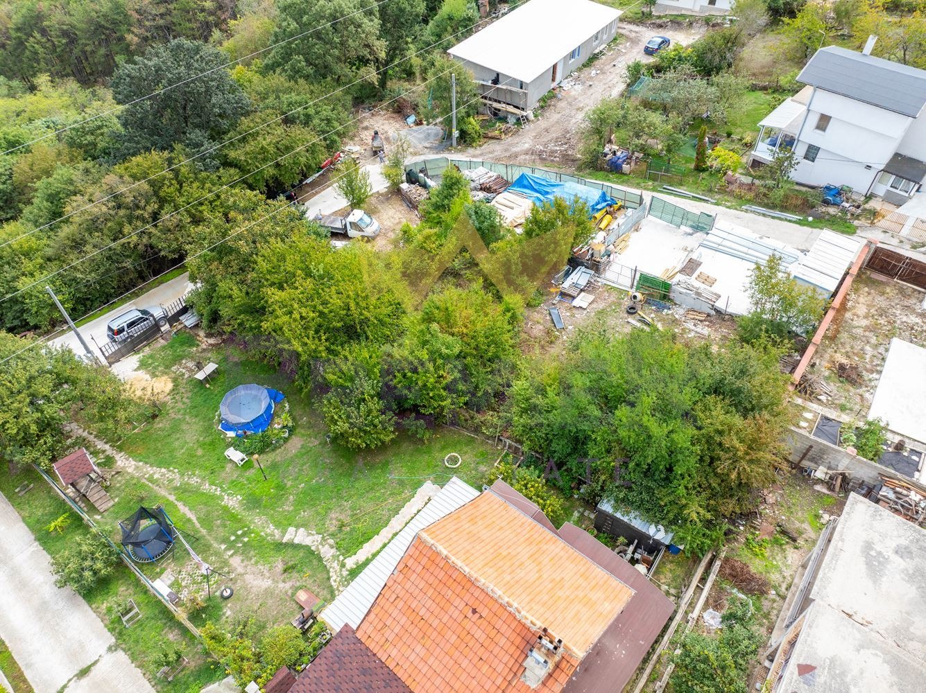 Парцела има готов проект за едноетажна къща 113.80кв.м. и разрешение за строителство, договори за присъединяване към ВИК и ЕНЕРГО ПРО.