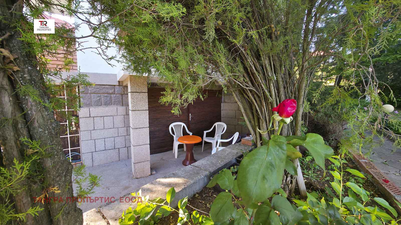 Теренът включва и просторна площадка, подходяща за декинг настилка, която позволява ползването на външен басейн и зона за шезлонги.
