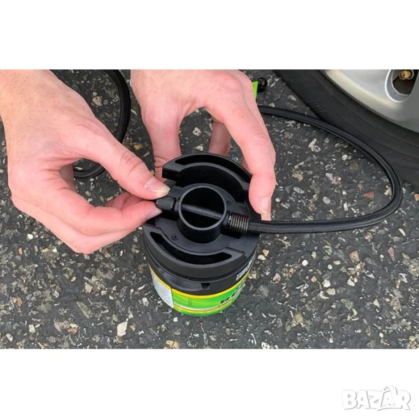 Уплътнителят за ремонт на спукана гума е създаден за временно използване и трябва да бъде отстранен в рамките на 3 дни или до 160km.