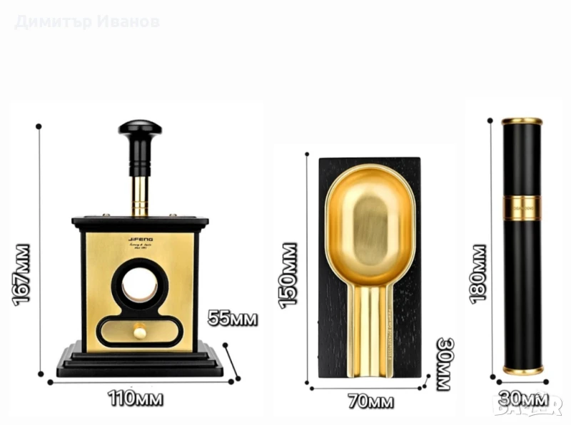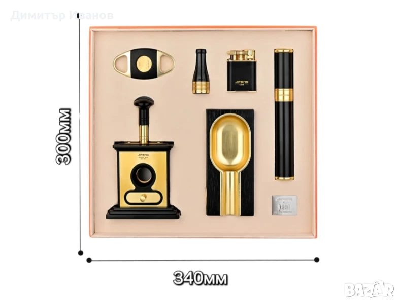 Подаръчен комплект от пепелник,запалка,ножица,гилотина,туба за пури → Обява 51015439