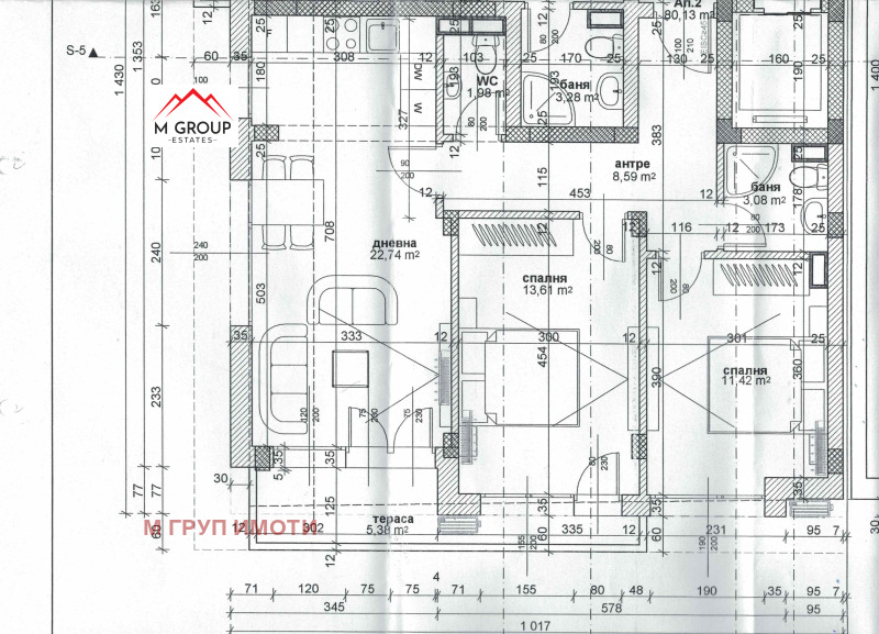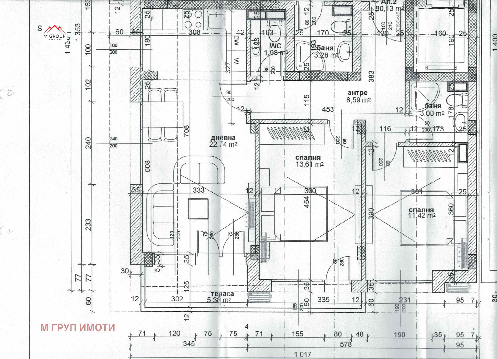 Ексклузивно от М ГРУП ИМОТИ Ви представяме тристаен апартамент с обща квадратура 98,38кв.м. в тихия е спокоен за живеене квартал Съдийски.