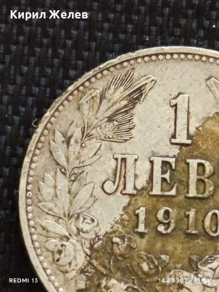 Сребърна монета 1 лев 1910г. Царство България Цар Фердинанд първи за КОЛЕКЦИЯ 25828