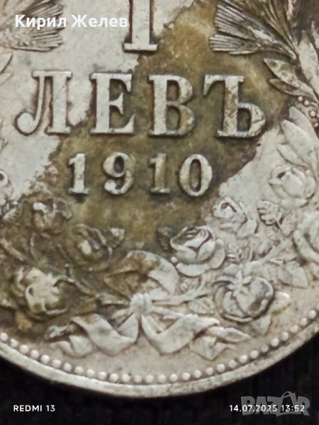 Сребърна монета 1 лев 1910г. Царство България Цар Фердинанд първи за КОЛЕКЦИЯ 25828 → Обява 51015669