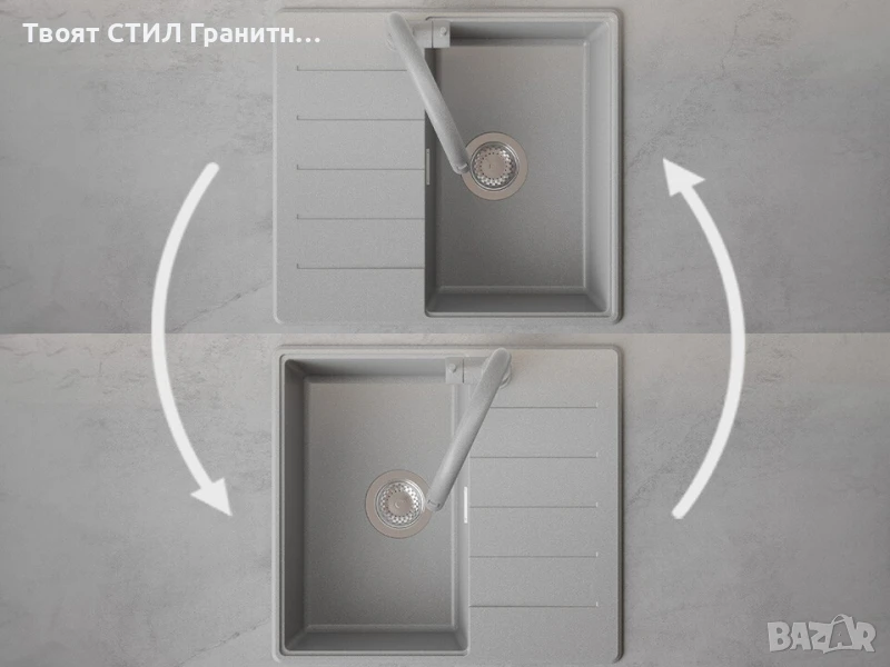 • Гъвкавост на дизайна - мивката е въртяща се - отцедникът може да се монтира отдясно или отляво