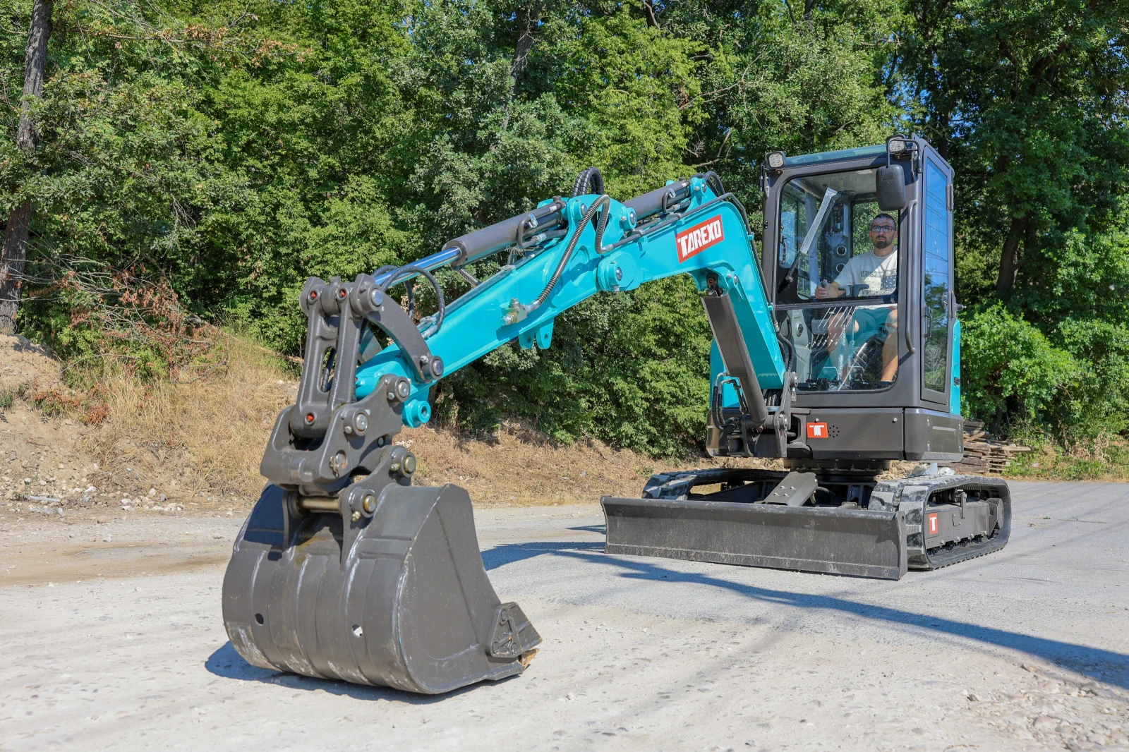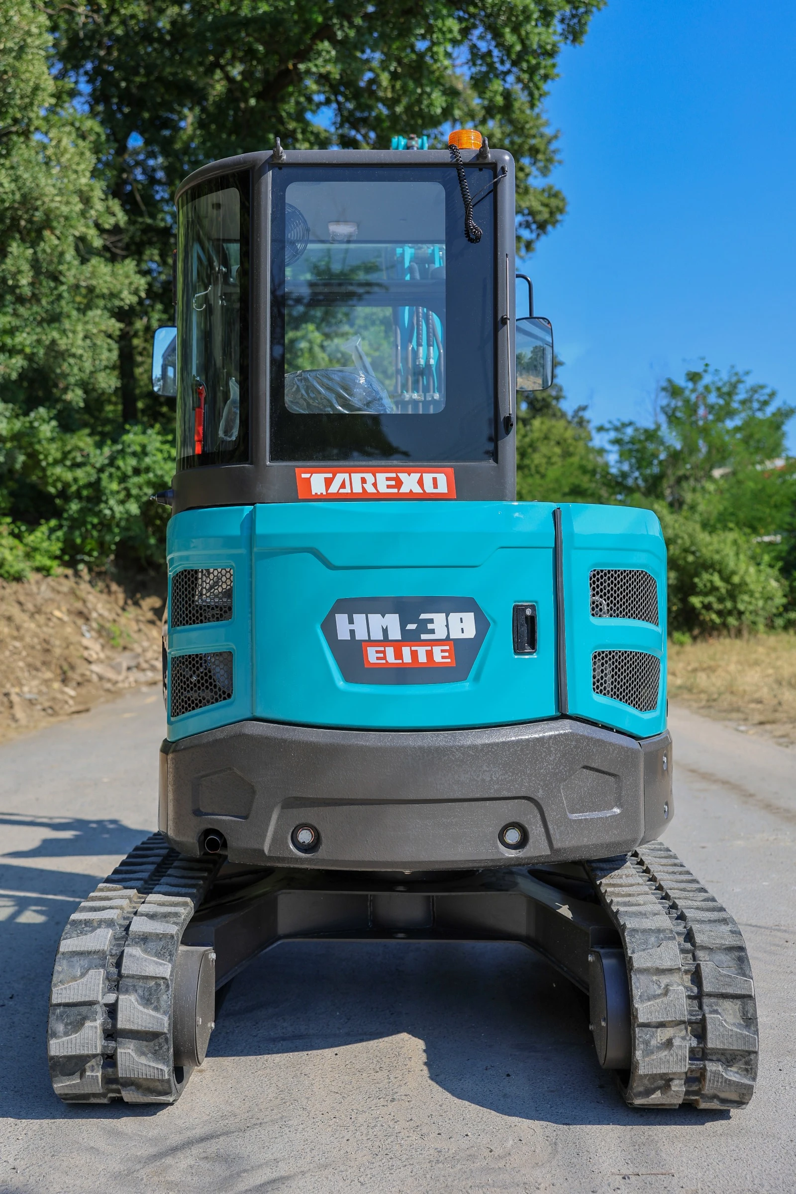 ЧИСТО НОВ БАГЕР TAREXO HM-38 ELITE: Комплект с бързосменник и три кофи 35см, 60см и 120 см накланяща се кофа Гаранция: 2 години Двигател: KUBOTA D1703 (18, 5 kW) надежден и икономичен, доказан японски производител Вградена климатична система комфорт при работа във всякакви условия Сила на копаене: 30. 4 kN Дебит на помпата: 108 л/мин Височина на повдигане: 4800 мм Височина на разтоварване: 3450 мм Дълбочина на копаене: 3350 мм Оперативно тегло: 3800 кг Собствено тегло: 3700 кг Размери: Широчина: 1720 мм Височина: 2525 мм Дължина: 4915 мм Мини багер TAREXO MS38 висок клас професионална машина, създадена за най-взискателните потребители, търсещи надеждност, комфорт и дълготрайна експоатация. Осигурен гаранционен и извънгаранционен сервиз с мобилни групи в град Варна, Пазарджик и Ловеч