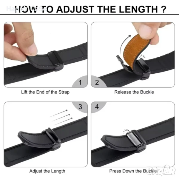 * Възможност за преместване на катарамата с цел регулиране на диаметъра на каишката