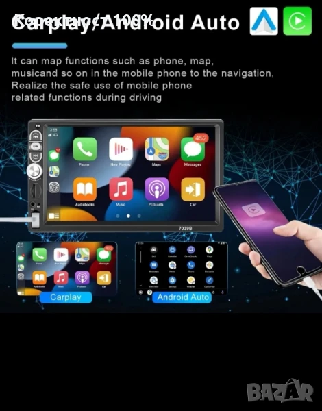 Качествена мултимедия 1 дин с андроид ауто 7 инча екран инча. Много добър дисплей. Мултимедията има много екстри.Нов модел - чудесен за автомобили с радио 1 дин.И WASE - приложение което може да качите го от вашия телефон.Едно много добро решение за вашия автомобил с един радио дин.