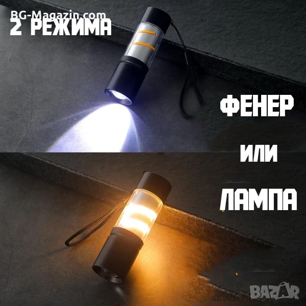 Многофункционалност: Три режима на светене за различни ситуации (фокусиран лъч за далечни обекти, стробоскоп за сигнализиране, странична светлина като къмпинг лампа).