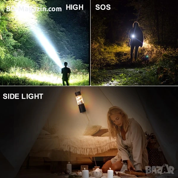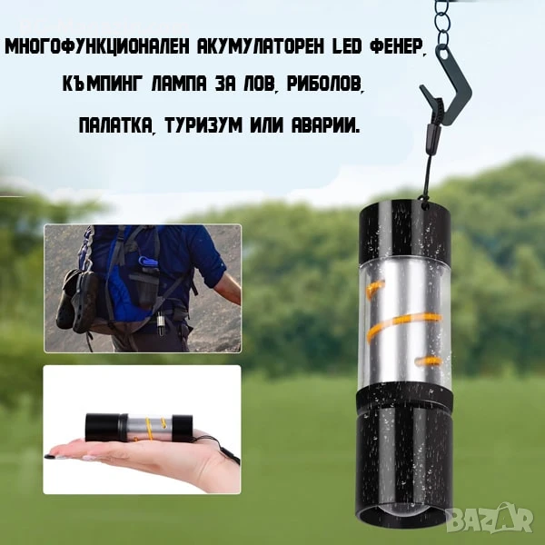 Този силен акумулаторен фенер LED къмпинг осветление лампа, който търси компактен, мощен и многофункционален източник на светлина. То е идеално за къмпинг, туризъм, риболов и други дейности на открито, както и за ежедневна употреба.