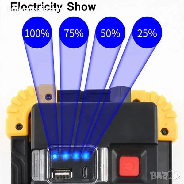 Представяме ви многофункционална и мощна сервизна работна къмпинг лампа осветление, идеална за къмпинг, риболов, лов, туризъм, автомобил и други дейности на открито. Тази лампа комбинира LED осветление, Power Bank функция за зареждане на устройства и възможност за захранване както с акумулаторни, така и с обикновени батерии, което я прави незаменим помощник във всяка ситуация.