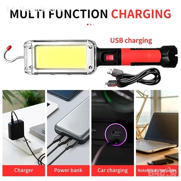 Представяме ви многофункционална и мощна акумулаторна преносима LED къмпинг лампа осветление, идеална за къмпинг, туризъм, риболов, ремонтни дейности и други ситуации, където е необходимо надеждно осветление.