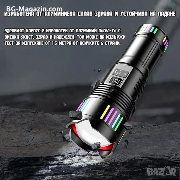 – Здрав и издръжлив корпус: Изработен от висококачествен алуминий, устойчив на удари и атмосферни влияния.