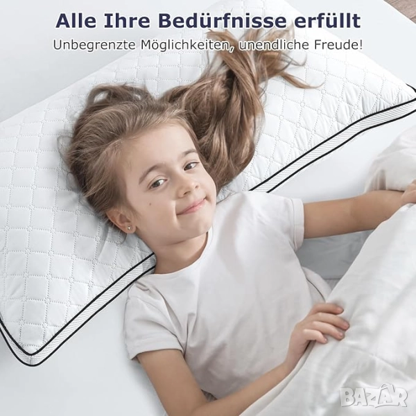 Перфектна комбинация от мекота и опора с нашата първокласна възглавница, която нежно обгръща главата и врата ви с хипоалергенен пълнеж за спокоен нощен сън. Мека, плътна и пухкава, идеална за страдащи от алергии.