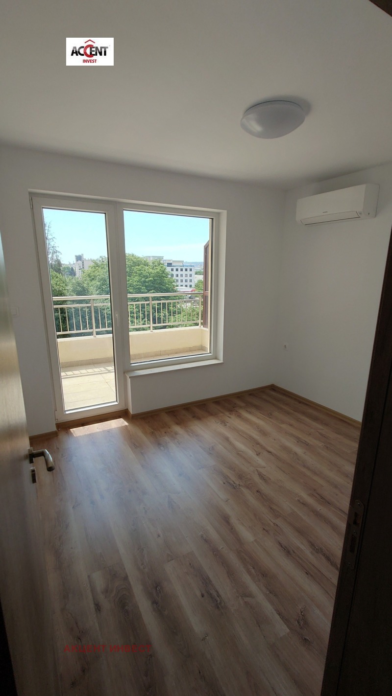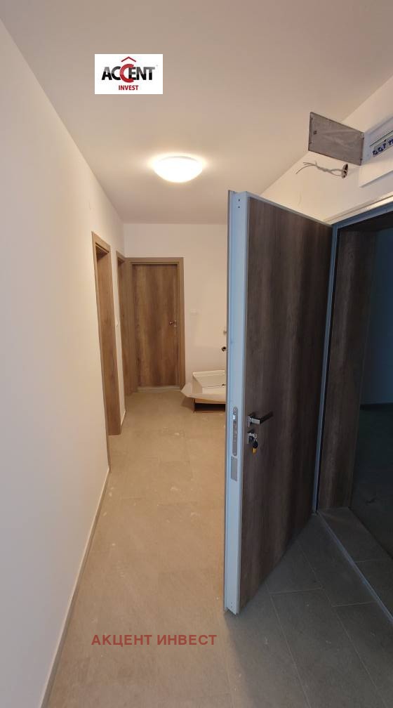 КОД 21463 'Акцент Инвест' Ви предлага офис помещение под наем след 'Гранд Мол'. Имотът е с обща площ от 100 кв.м. и се намира на 5-ти етаж в нова сграда. Състои се от коридор, три работни помещения, баня с тоалетна, килер, тераса пред трите стаи. Имотът се предлага без обзавеждане, посочената цена е без включен ДДС. Обектът е оборудван с бойлер, два климатика, СОТ система, щори. Допълнително се заплаща такса поддръжка, допълнително може да се наеме паркомясто.