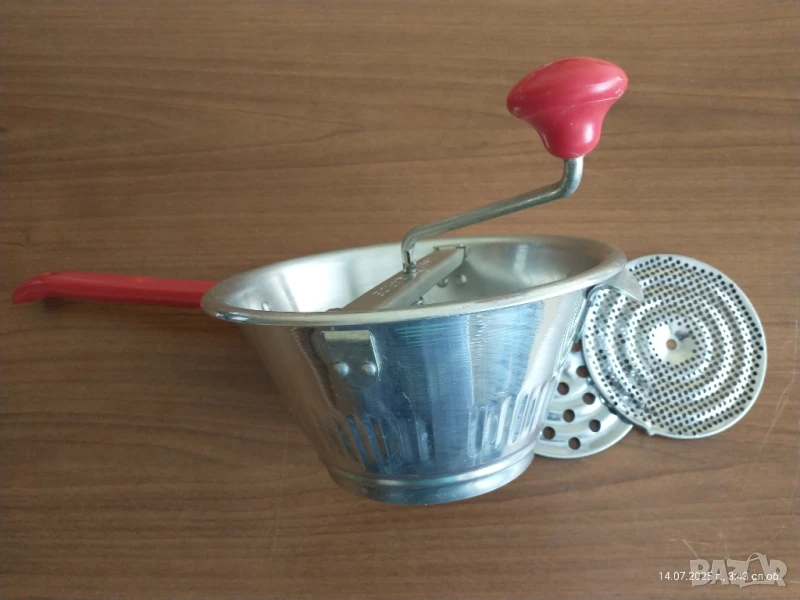Продавам висококачествена френска ръчна преса за зеленчуци „PASSE RAPIDE“, изработена изцяло от неръждаема стомана. Подходяща за приготвяне на пюрета, сосове, супи, конфитюри и много други домашни рецепти.
