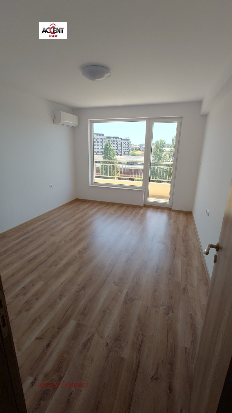 КОД 21475 'Акцент Инвест' Ви предлага офис помещение под наем след 'Гранд Мол'. Имотът е с обща площ от 110 кв.м. и се намира на 6-ти етаж в нова сграда. Състои се от коридор, три работни помещения, баня с тоалетна, тоалетна, килер, тераса пред трите стаи. Имотът се предлага без обзавеждане, посочената цена е без включен ДДС. Обектът е оборудван с бойлер, два климатика, СОТ система, щори. Допълнително се заплаща такса поддръжка, допълнително може да се наеме паркомясто.