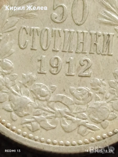Сребърна монета 50 стотинки 1913г. Царство България Цар Фердинанд първи за КОЛЕКЦИЯ 27198 → Обява 51017767