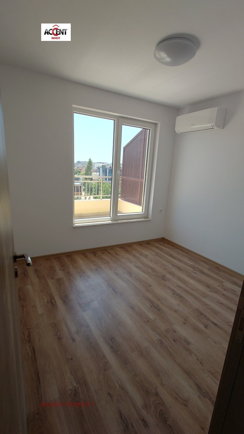 КОД 21474 'Акцент Инвест' Ви предлага офис помещение под наем след 'Гранд Мол'. Имотът е с обща площ от 109 кв.м. и се намира на 6-ти етаж в нова сграда. Състои се от коридор, три работни помещения, баня с тоалетна, тоалетна, килер, тераса пред двете стаи. Имотът се предлага без обзавеждане, посочената цена е без включен ДДС. Обектът е оборудван с бойлер, два климатика, СОТ система, щори. Допълнително се заплаща такса поддръжка, допълнително може да се наеме паркомясто.