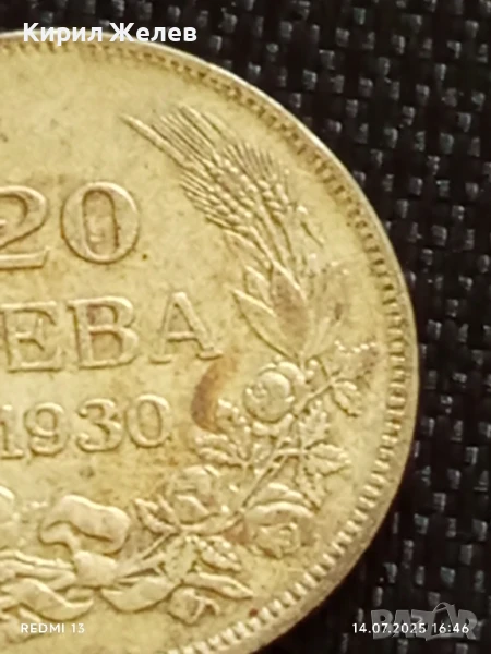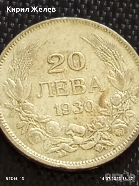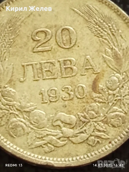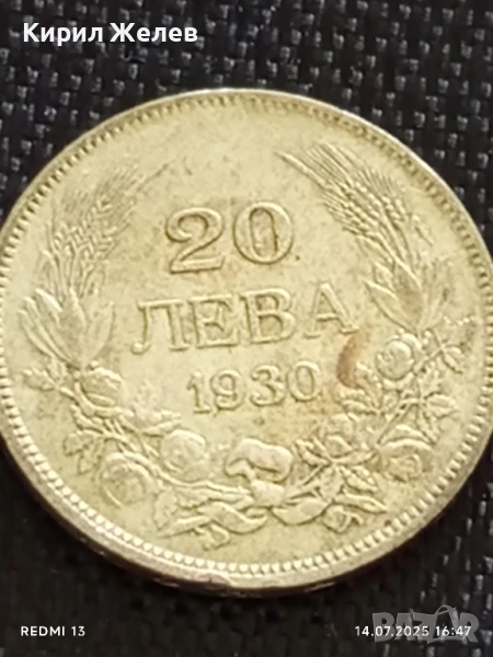 Сребърна монета 20 лева 1930г. Царство България Цар Борис трети за КОЛЕКЦИЯ 14483