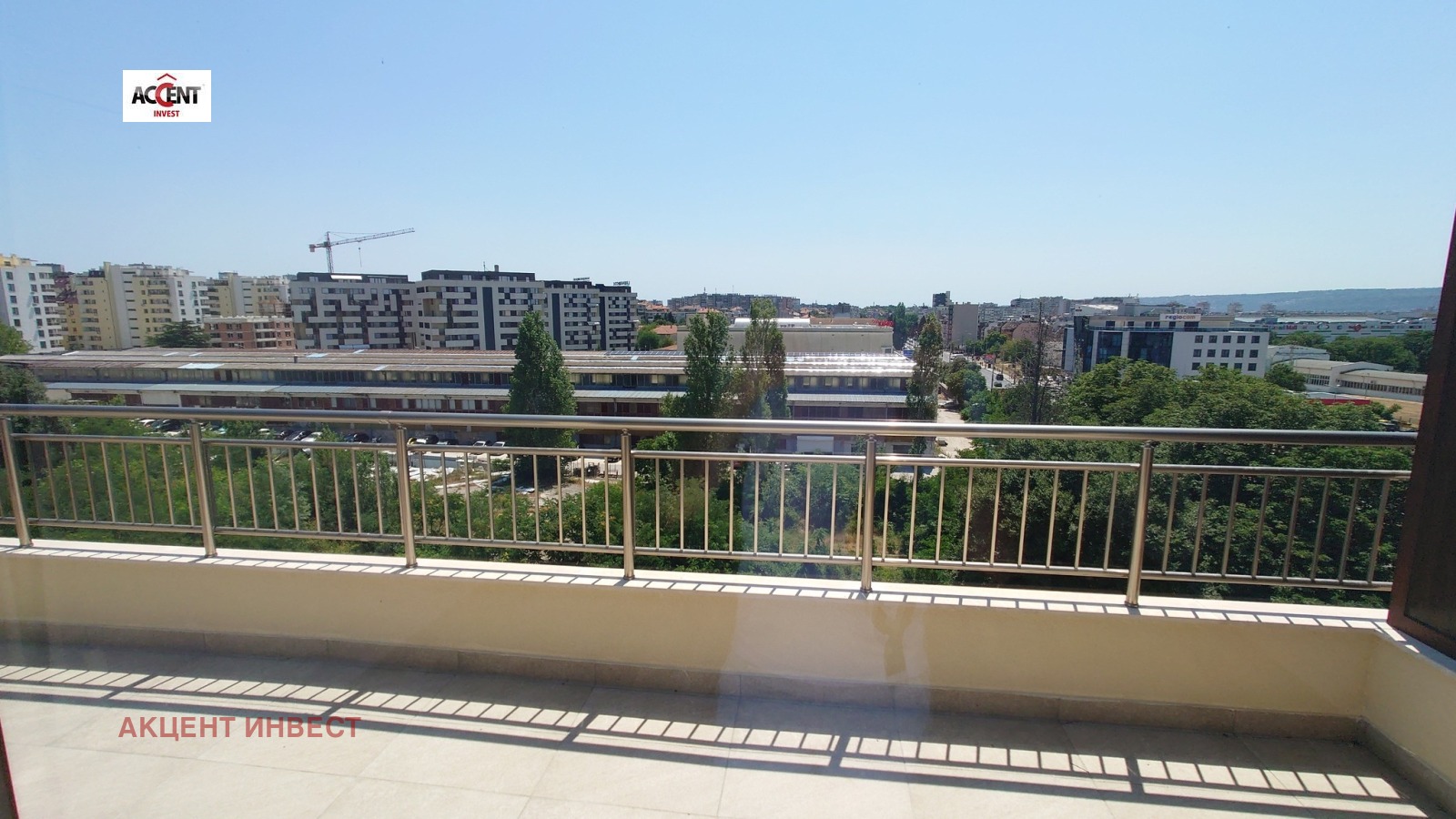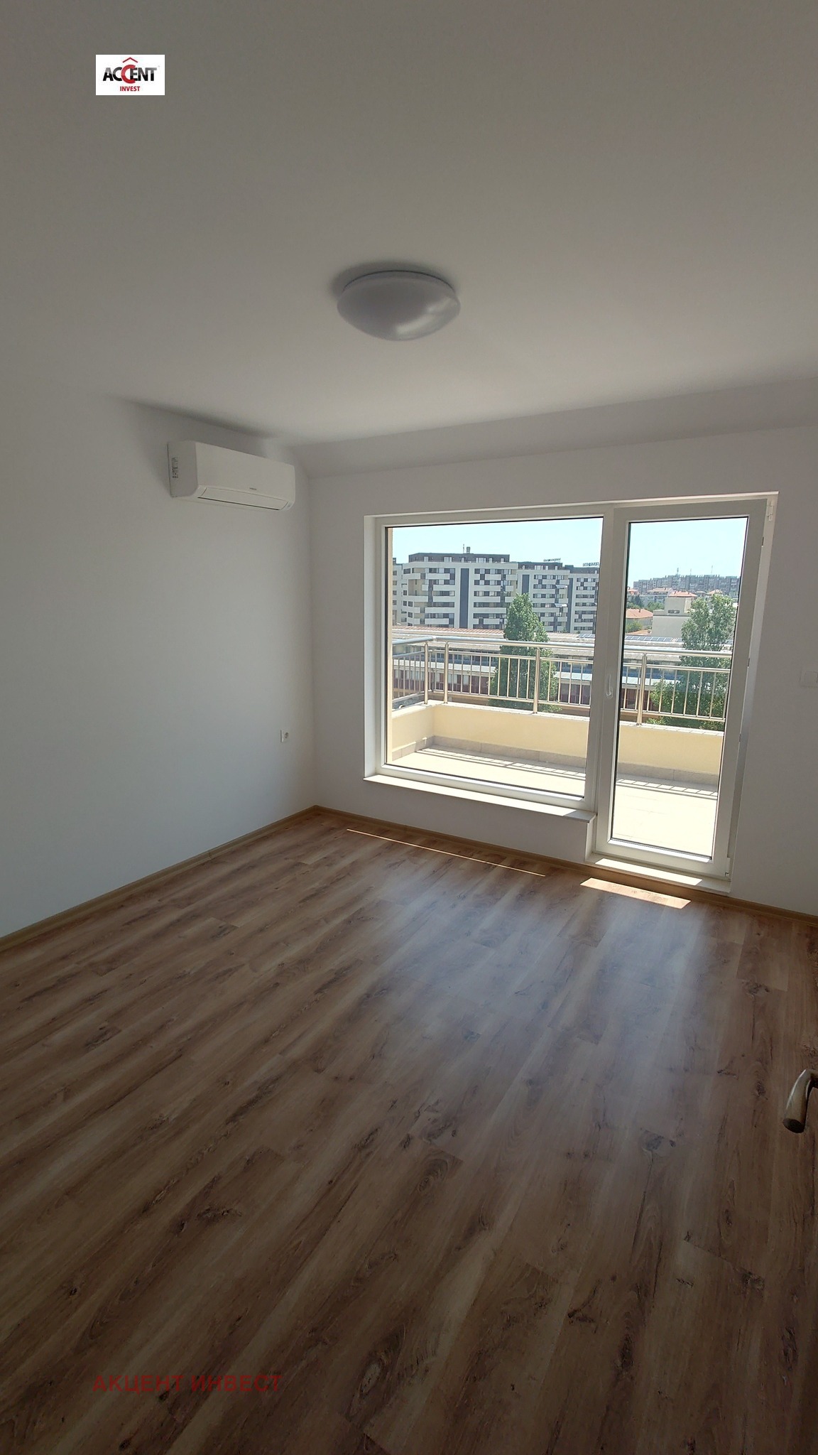 КОД 21482 'Акцент Инвест' Ви предлага офис помещение под наем, в района след 'Гранд Мол'. Имотът е с обща площ от 92кв.м. и се намира на 7-ми етаж в нова сграда. Състои се от коридор, три работни помещения, баня с тоалетна, килер и тераса. Имотът се предлага без обзавеждане, посочената цена е без включен ДДС. Обектът е оборудван с бойлер, два климатика, СОТ система, щори. Допълнително се заплаща такса поддръжка, допълнително може да се наеме паркомясто.