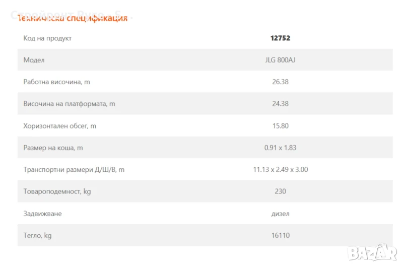 Артикулираща самоходна вишка под наем, модел JLG 800AJ. Максималната работна височина на машината е 26 м. С нея може да достъпвате труднодостъпни или тесни места, без значение от вида на терена, върху който работите. Сред основните предимства на вишката са: - високата проходимост