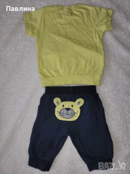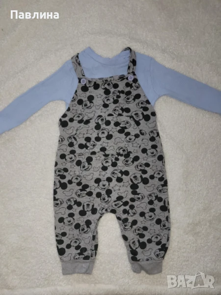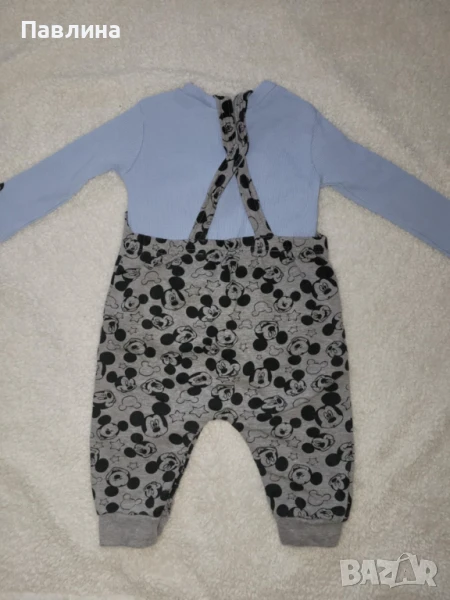 Бебешки Комплект Disney - 18-24м. Състои се от блузка с дълъг ръкав и гащеризонче. Гащеризончето е много мекичко, памук. Дължината е малко над глезена или тип 7/8. Подходящо за момче до 2г.