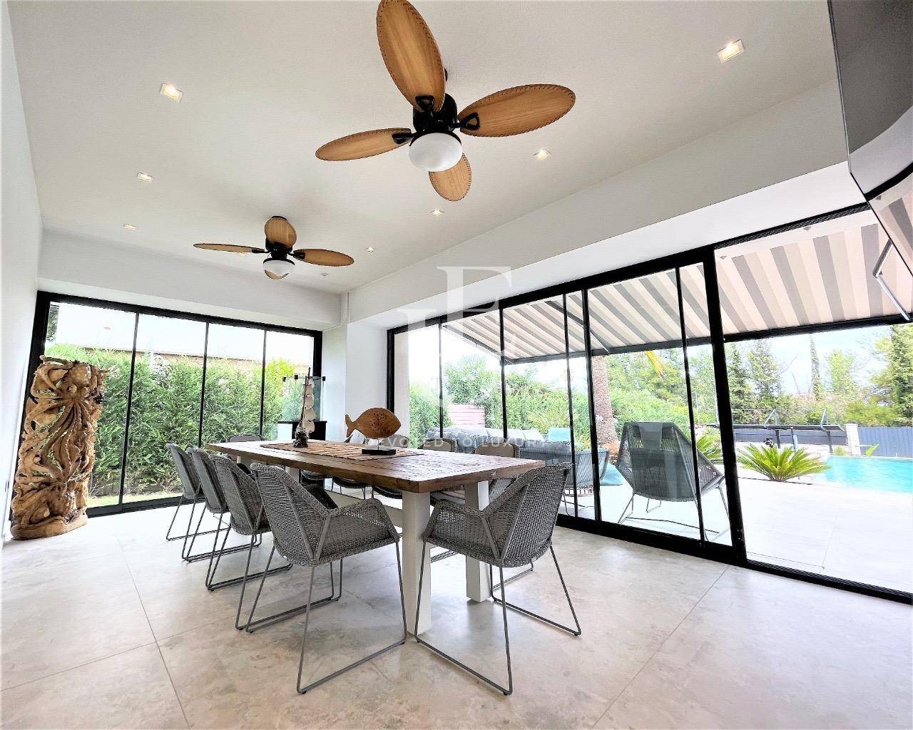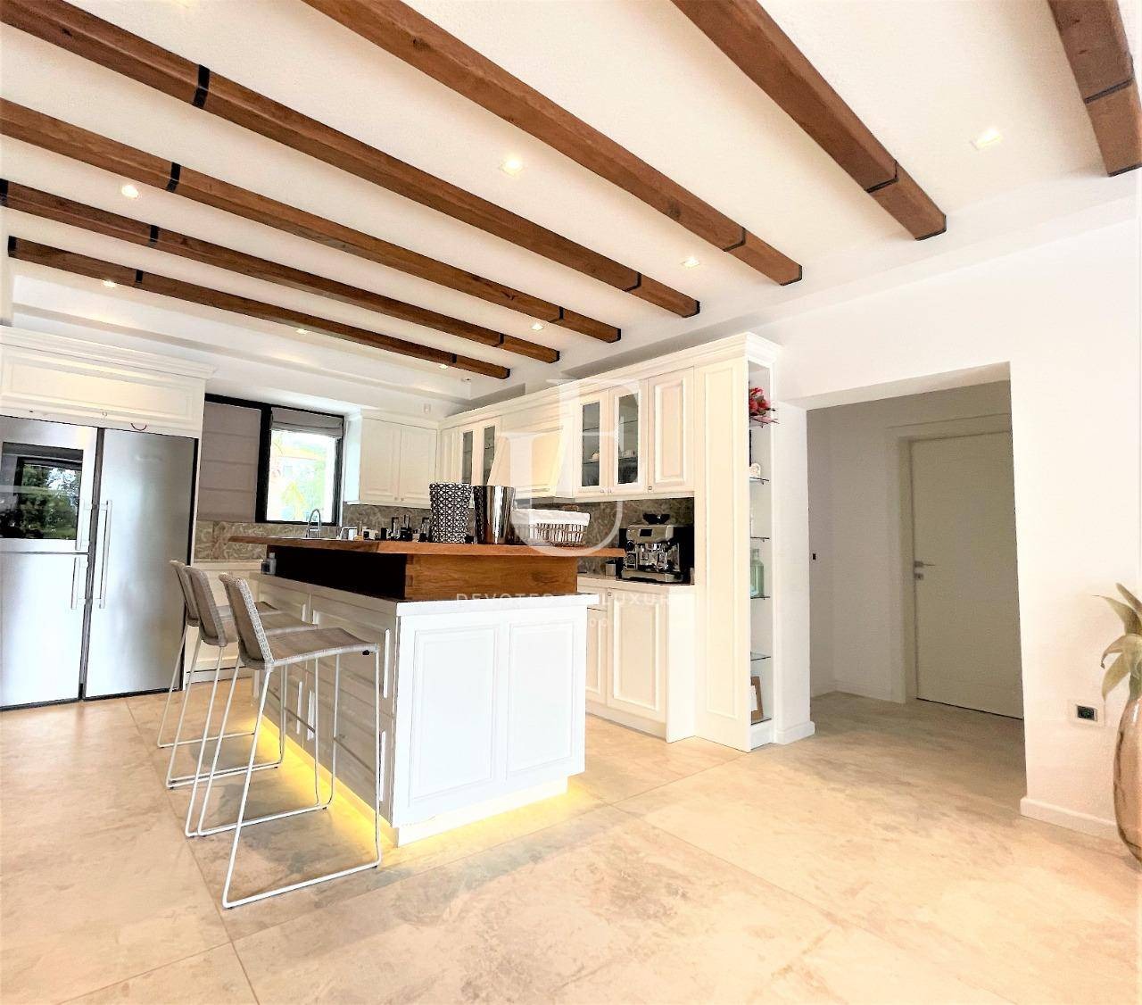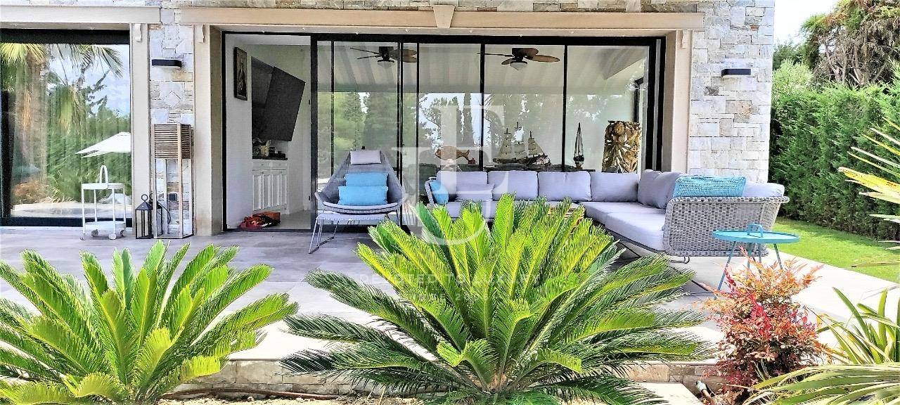 Вилата предлага четири просторни и уютни спални, всяка със собствена баня, както и допълнителна детска стая с две легла - идеално решение за семейства или гости. Светлите дневни зони и елегантният интериор осигуряват усещане за комфорт и хармония, съчетавайки съвременен дизайн с неподправен средиземноморски чар.