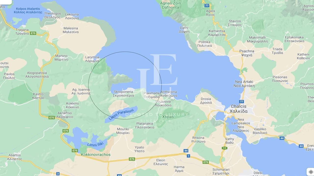 Имотът е разположен в живописна местност във вилна зона Скропонерия , което е на 17км. от гр. Халкида и на само на 500 метра от златистите пясъци на Егейско море, на пешеходно разстояние до плажа.