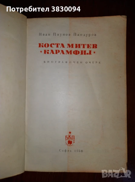 Издание на БКП ,биографичен очерк за Коста Митев от Иван Паунов Пандурски ,София 1968г