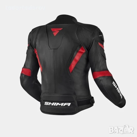 Мъжко кожено мото яке за мотор SHIMA CHASE BLACK/RED 2025, всички протектори,вентилация