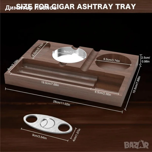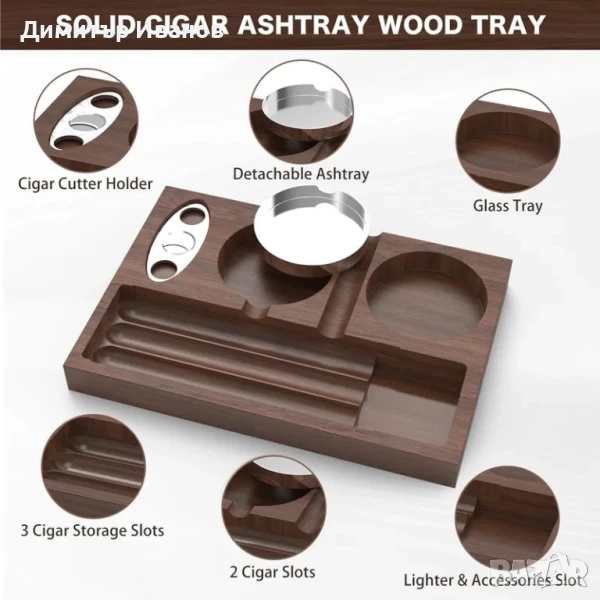 Кедров поднос със ножичка,пепелник, поставка за чаша и отделение за пури → Обява 51019873