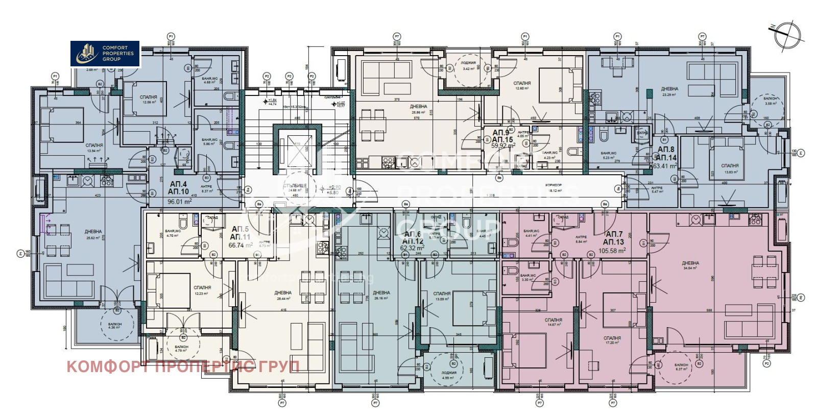 За продажба се предлага: Двустаен Апартамент разположен на 2 жилищен етаж от 4 етажна жилищна сграда с обща площ от 74.53 кв.м и 66.74 кв.м застроена площ.