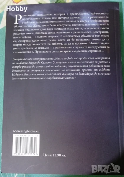 Разказаната наполовина история е пестъпление, най-голямото престъпление. Когато тази история започна, то тя разказваше за съдбата на една обикновена жена, озовала се насред необикновени обстоятелства. Жена, която беше необучена, неопитна и неподготвена. А когато и последните думи бяха изписани върху листа, те описваха съвсем различен човек. Описваха жена, изпълнена с решителност. Безстрашна, непоколебима - и главно: уверена. С непоклатима убеденост във вярата си, съзираща единствено целта, която си бе поставила, готова да се хвърли между челюстите на гибелта, за да я постигне. Имаше задача, която трябваше да изпълни - и разполагаше с нужните инструменти за изпълнението й. Представете си какво крият следващите страници...Втората книга от трилогията "Книга на Дийкън" продължава историята на младата Миранда селесте. Усъвършенствала магическите си умения и твърдо решена да сложи край на войната, опустошаваща родната й земя, девойката се отправя в търсенето на петимата орисани от съдбата Избрани. Всеки нов воин е нова стъпка към мира, но дали Миранда ще съумее да се справи с очакващите я предизвикателства?За повече информация на лично съобщение!