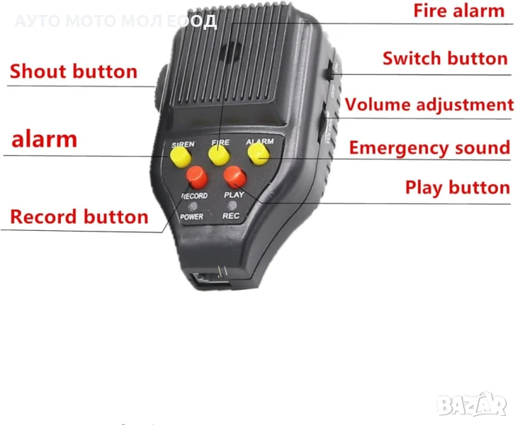 Авто Сирена с 3 мелодии, микрофон и функция запис - 12V 100W
