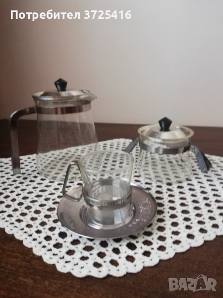 Сервиз за кафе 8 броя чаши и чинийки с каничка и захарница → Обява 51022328