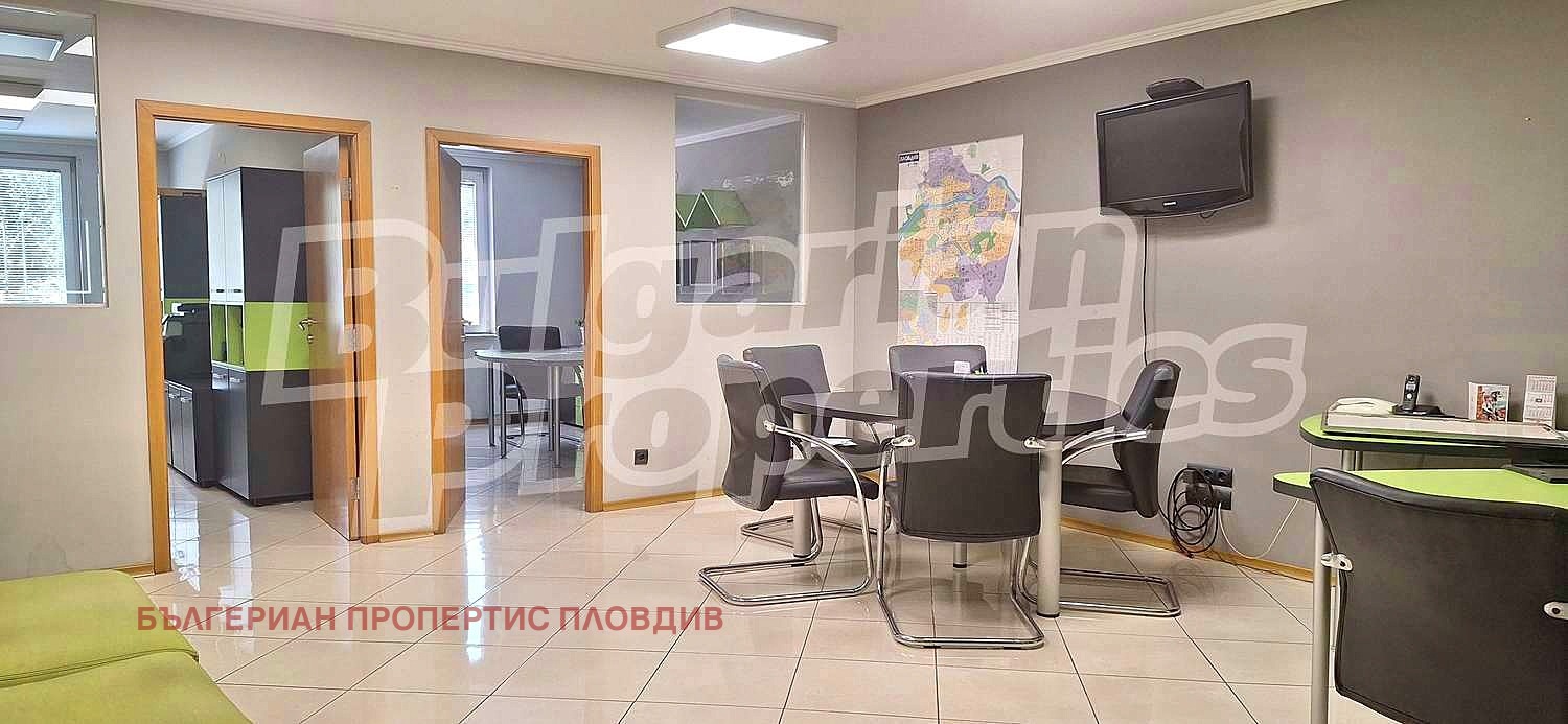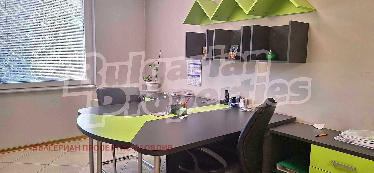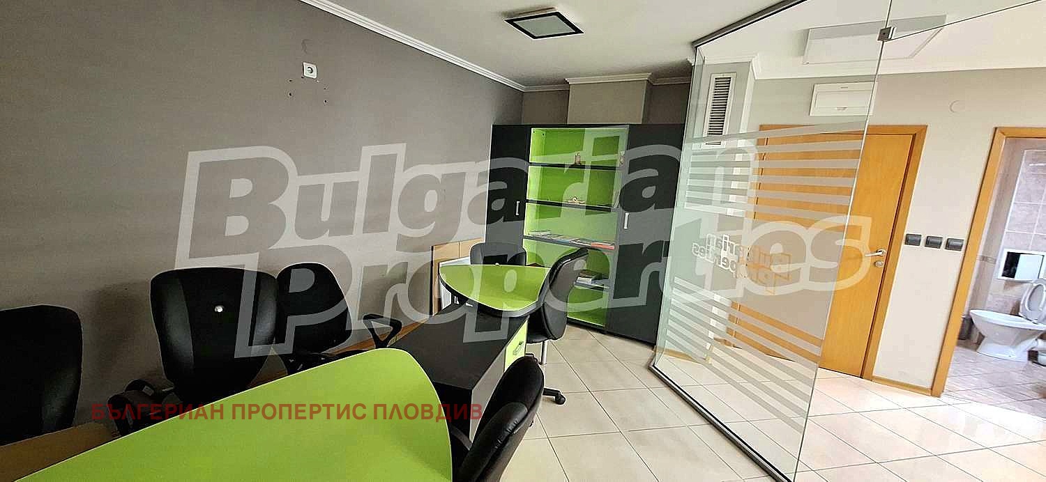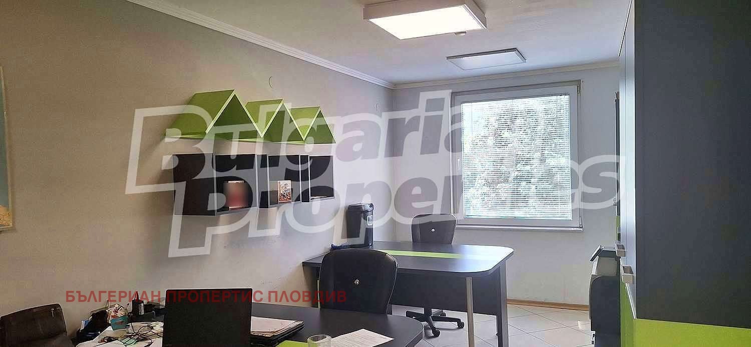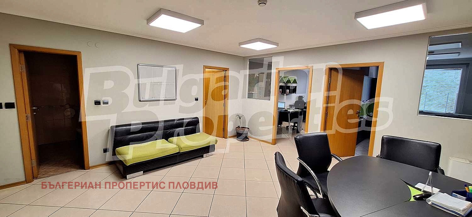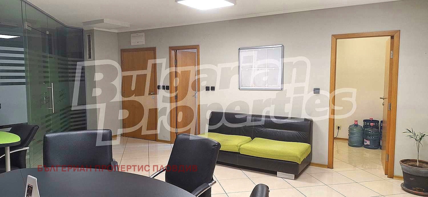 Предлагаме под наем офис (101 кв.м.) на 4 етаж в поддържан бизнес център клас А. На пешеходно разстояние са разположени Регионален исторически музей, Четвъртък пазар, Районен съд, болница, Дондукова градина и много други удобства и обществени институции от центъра на Пловдив.