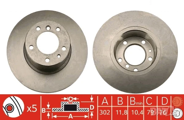 Диск спирачен преден дeсен/ляв за BMW 5 (E34) 1.8-2.5D 06.87-07.96г.№ B2231P