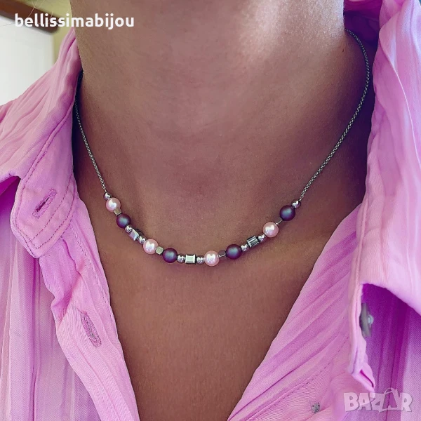 • Дамско Колие с Перли и Кристали ''Swarovski'' Изработено от;