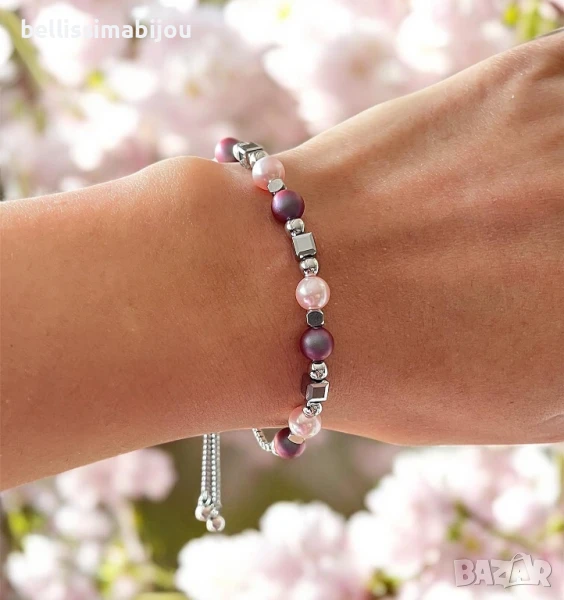 • Дамска Гривна с Перли и Кристали ''Swarovski'' Изработено от;