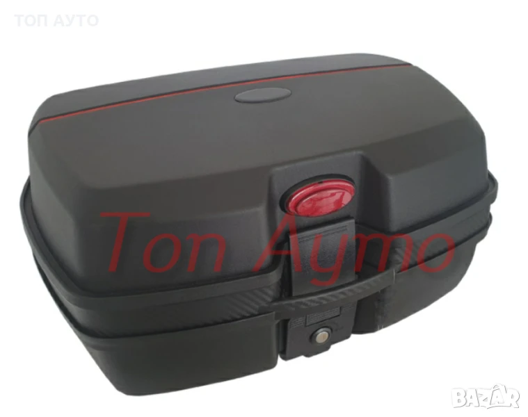 Подходящи за съхранение на 2 броя каски. Куфарите са черни с червени светлоотразители, с удобна дръжка за пренасяне.