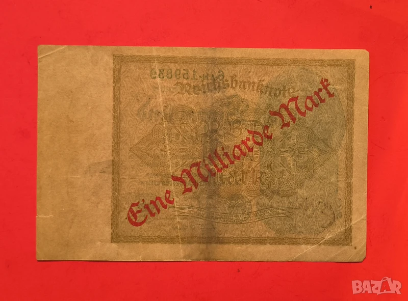 Германия надпечатка 1 милиард 1923 върху 1000 марки 1922, снимка 1 - Нумизматика и бонистика - 51026941 Германия надпечатка 1 милиард 1923 върху 1000 марки 1922, снимка 2 - Нумизматика и бонистика - 51026941 1/2