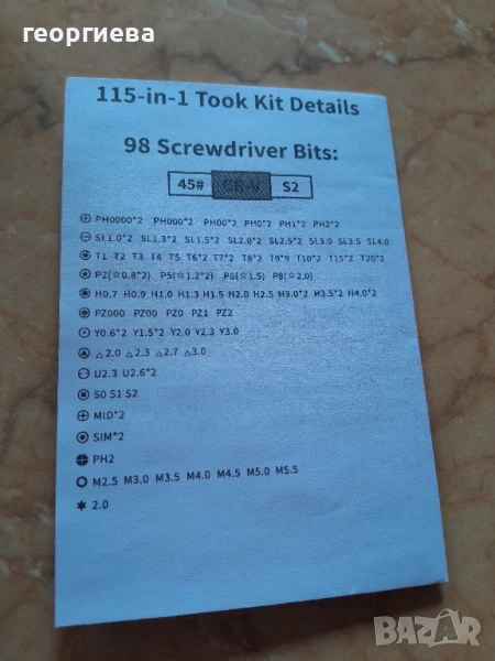 комплект инструменти и битове за ремонт на телефони и фина механика, снимка 1 - Други инструменти - 51027116 комплект инструменти и битове за ремонт на телефони и фина механика, снимка 2 - Други инструменти - 51027116 комплект инструменти и битове за ремонт на телефони и фина механика, снимка 3 - Други инструменти - 51027116 комплект инструменти и битове за ремонт на телефони и фина механика, снимка 4 - Други инструменти - 51027116 комплект инструменти и битове за ремонт на телефони и фина механика, снимка 5 - Други инструменти - 51027116 1/5