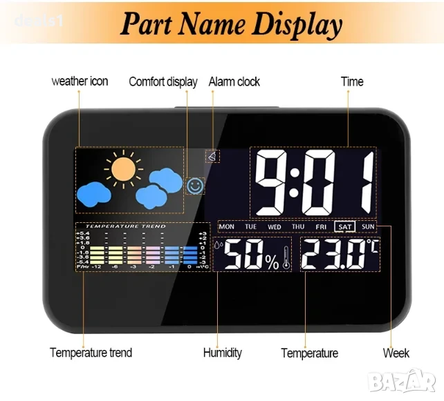 Температурен обхват: -10℃ до 61℃ (или 14.2℉ до 140℉); превключване между ℃/℉