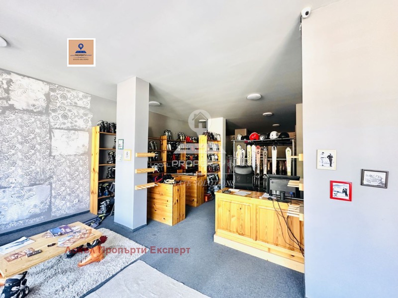 Магазина е с топ локация и е на 2 мин. пеша от ски пътя. Магазина е 115кв.м. и е с витрина към улица 9 метра лице.