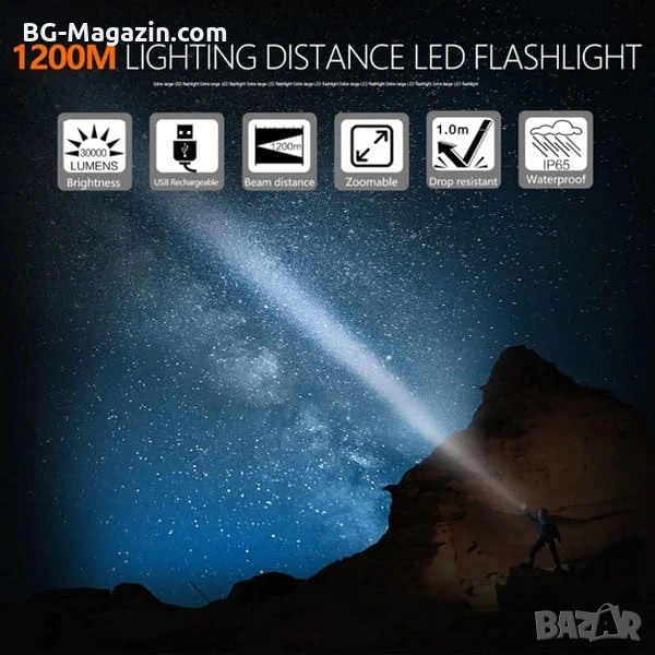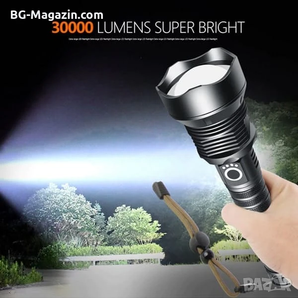 – Изключително мощно осветление: 30000 лумена осигуряват отлична видимост дори и в най-тъмните условия.