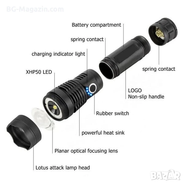 Не разглобявайте този мощен тактически фенер LED прожектор регулируем фокус сами.