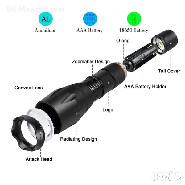 – Мощно и ярко осветление: CREE XML-T6 диод осигурява отлична видимост.