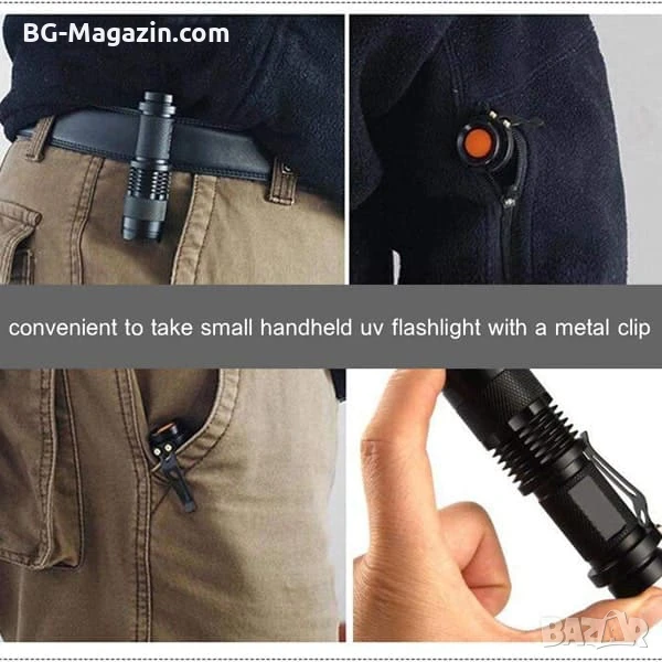 Представяме ви мощен LED акумулаторен UV фенер 395nm, който е идеален за широк спектър от приложения – от проверка на автентичност на документи и пари до откриване на скрити замърсявания и други невидими за окото детайли.