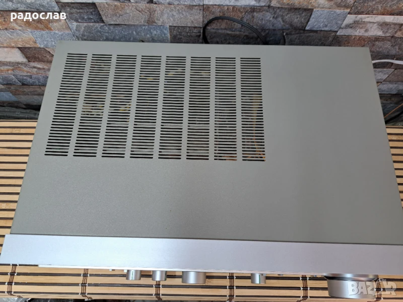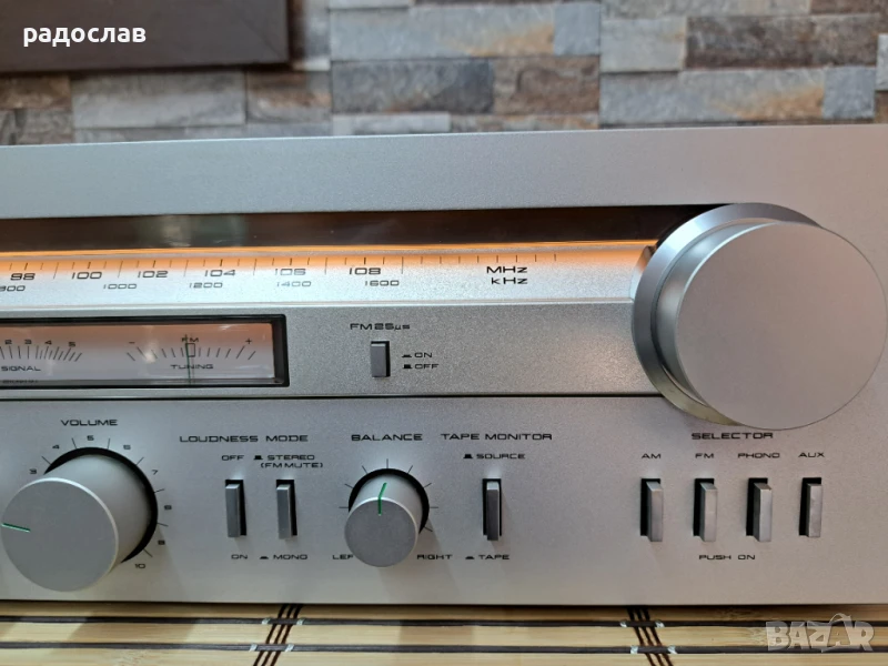 Произведен в Япония, модела е от 1980 година. Транзисторен усилвател, аналогов тунер. Метална кутия, с масивен алуминиев панел. Минимални следи от употреба. Много красива и ефектна визия! Размери 480 x 123 x 268. При звучене от тунера 2 x 46 вата на 4 ома и 2 x 26 на 8 ома, при подаване на сигнал от CD плеар, звукът е по силен.